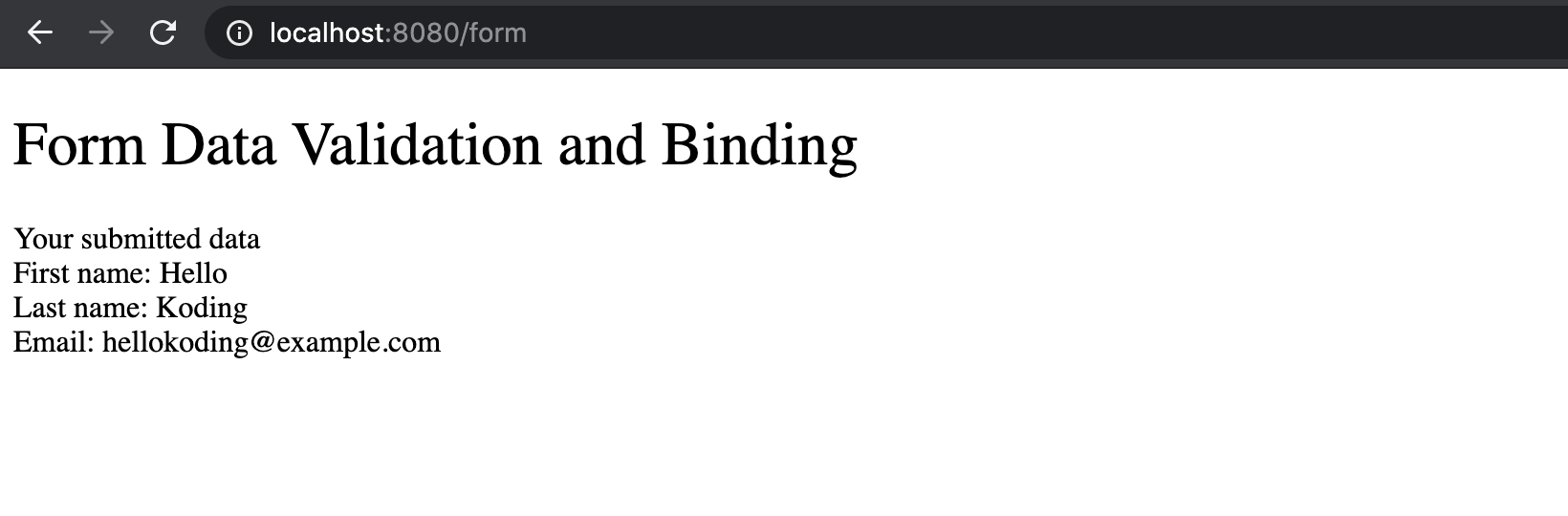Access to http://localhost:8080/form on your web browser and start to explore the application